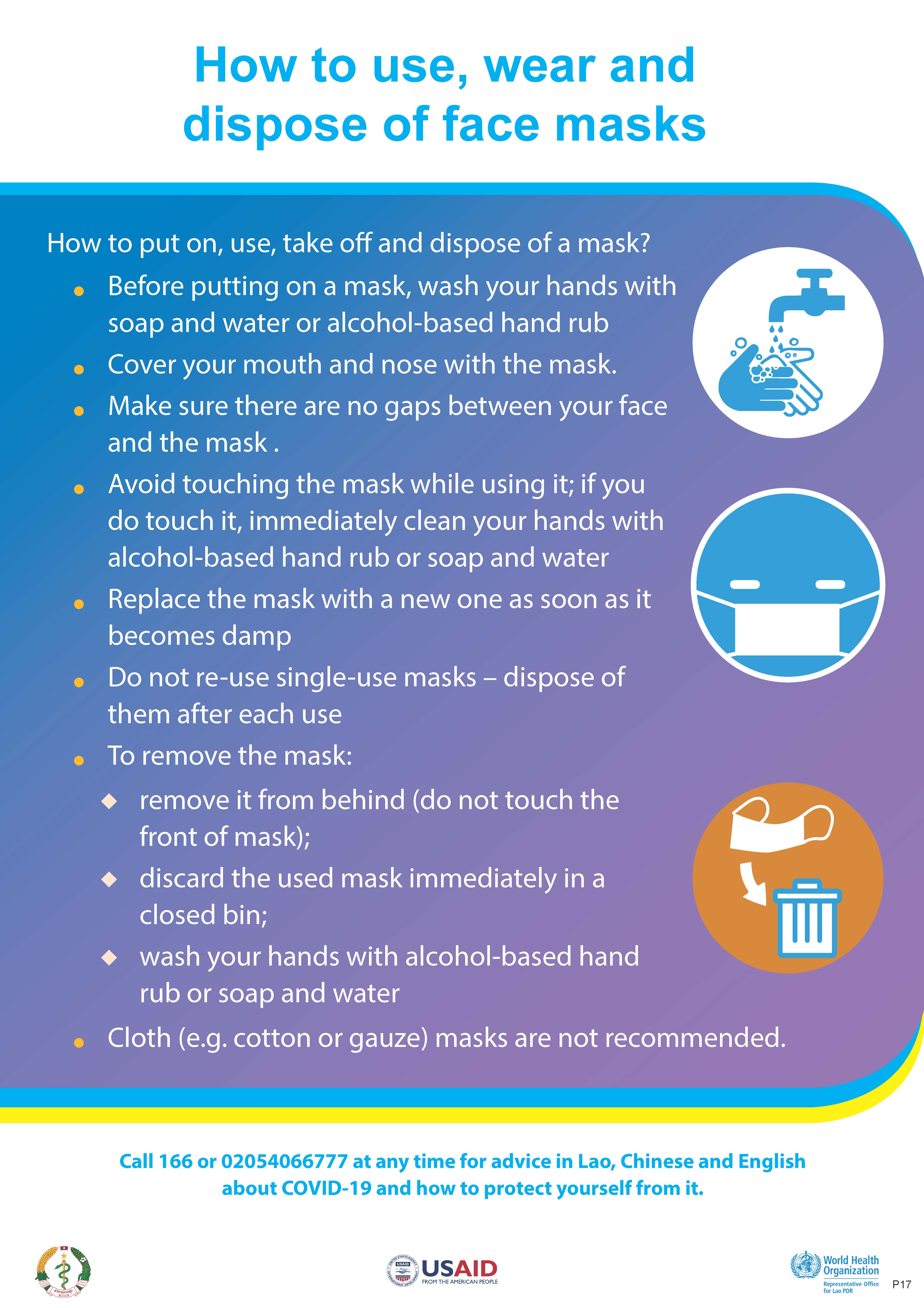 - How to use, wear and dispose of face masks