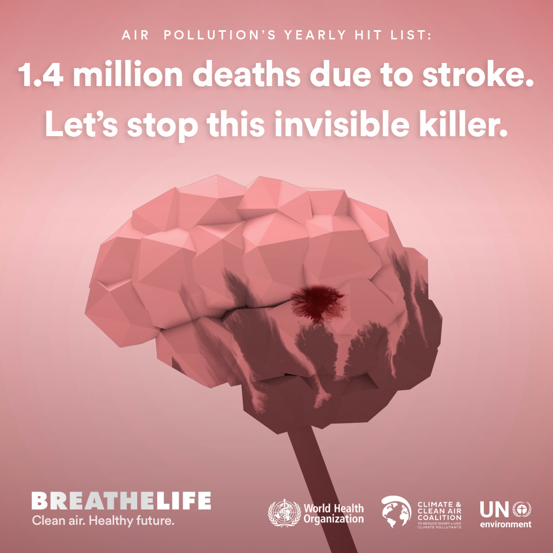 1.4 deaths due to stroke. Let's stop this invisible killer. 17 March 2021 | graphics (infographic) WHO Team Air Quality, Energy and Health (AQE)