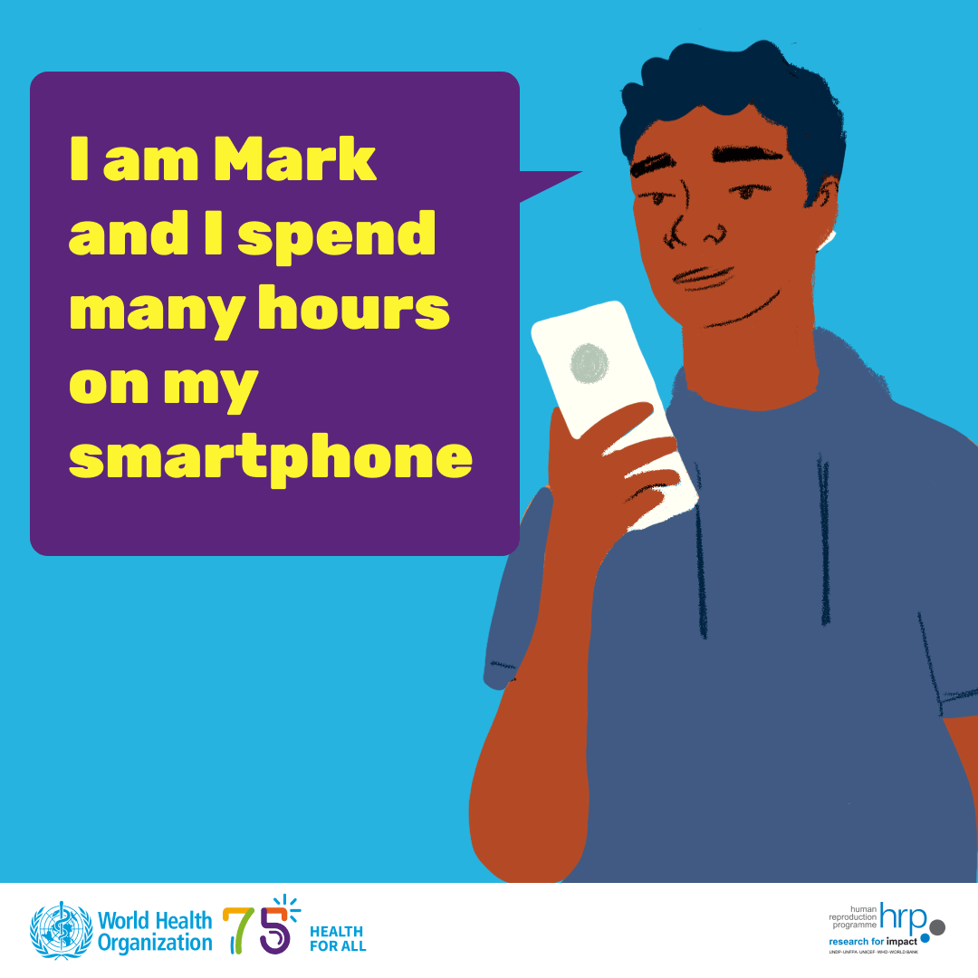 I am Mark and I spend many hours on my smartphone 26 March 2024 | graphics (animated image) WHO Team Sexual and Reproductive Health and Research (SRH)