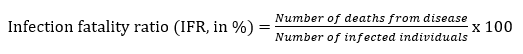 There are two measures used to assess the proportion of infected individuals with fatal outcomes. The first is infection fatality ratio (IFR), which estimates this proportion of deaths among all infected individuals. The second is case fatality ratio (CFR), which estimates this proportion of deaths among identified confirmed cases.