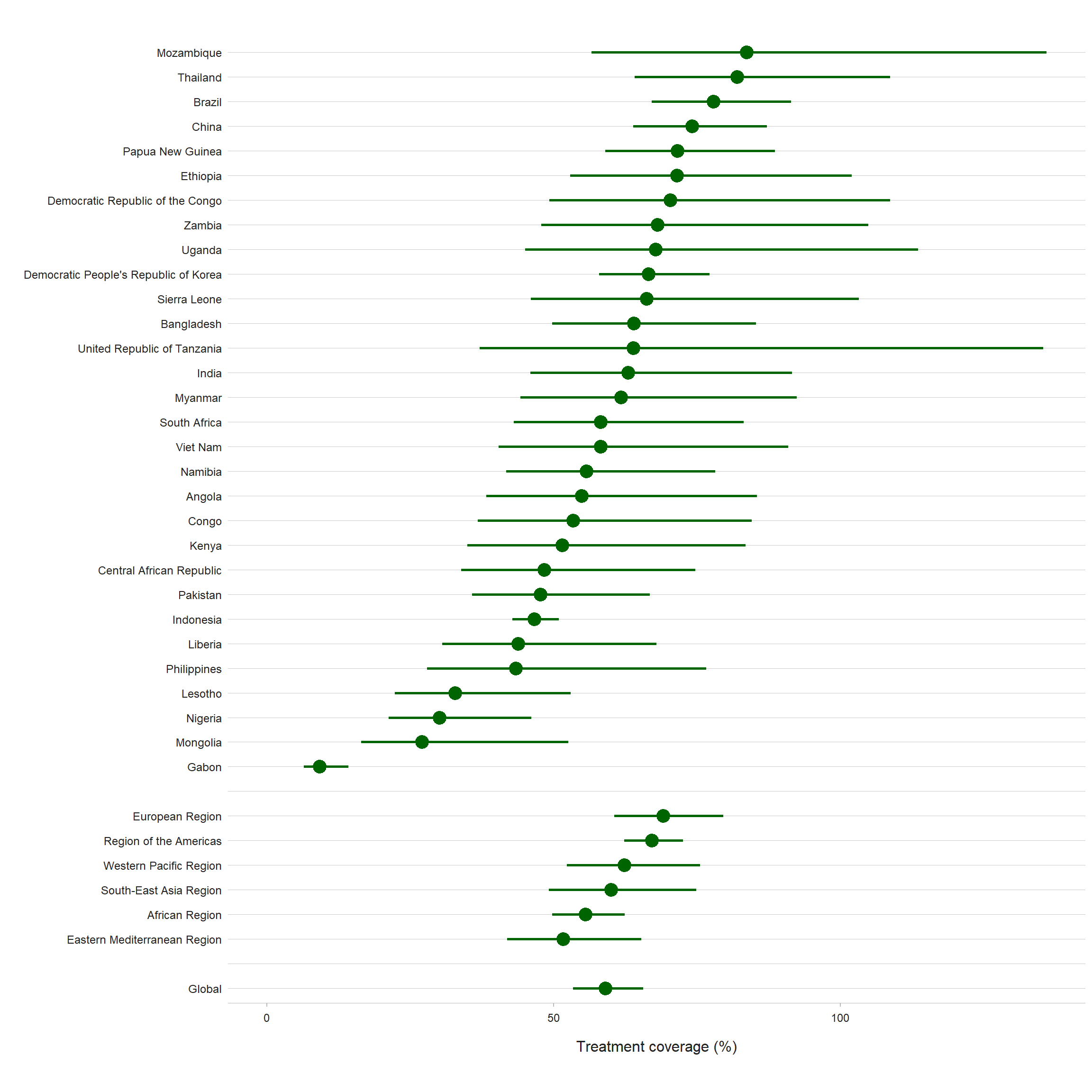 Country-specific details about TB treatment and treatment coverage are available in the Global tuberculosis report app and country profiles.