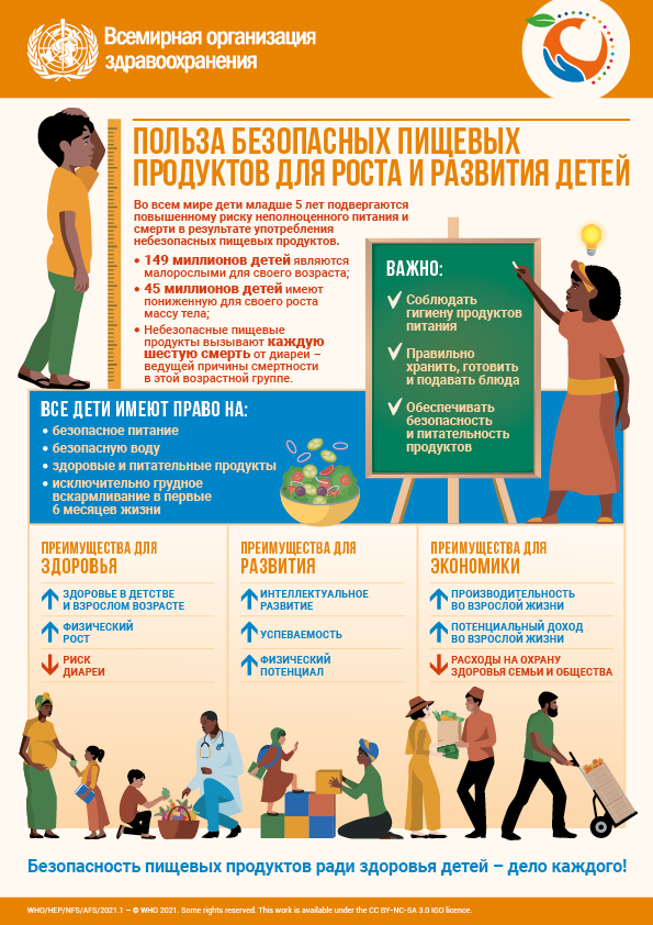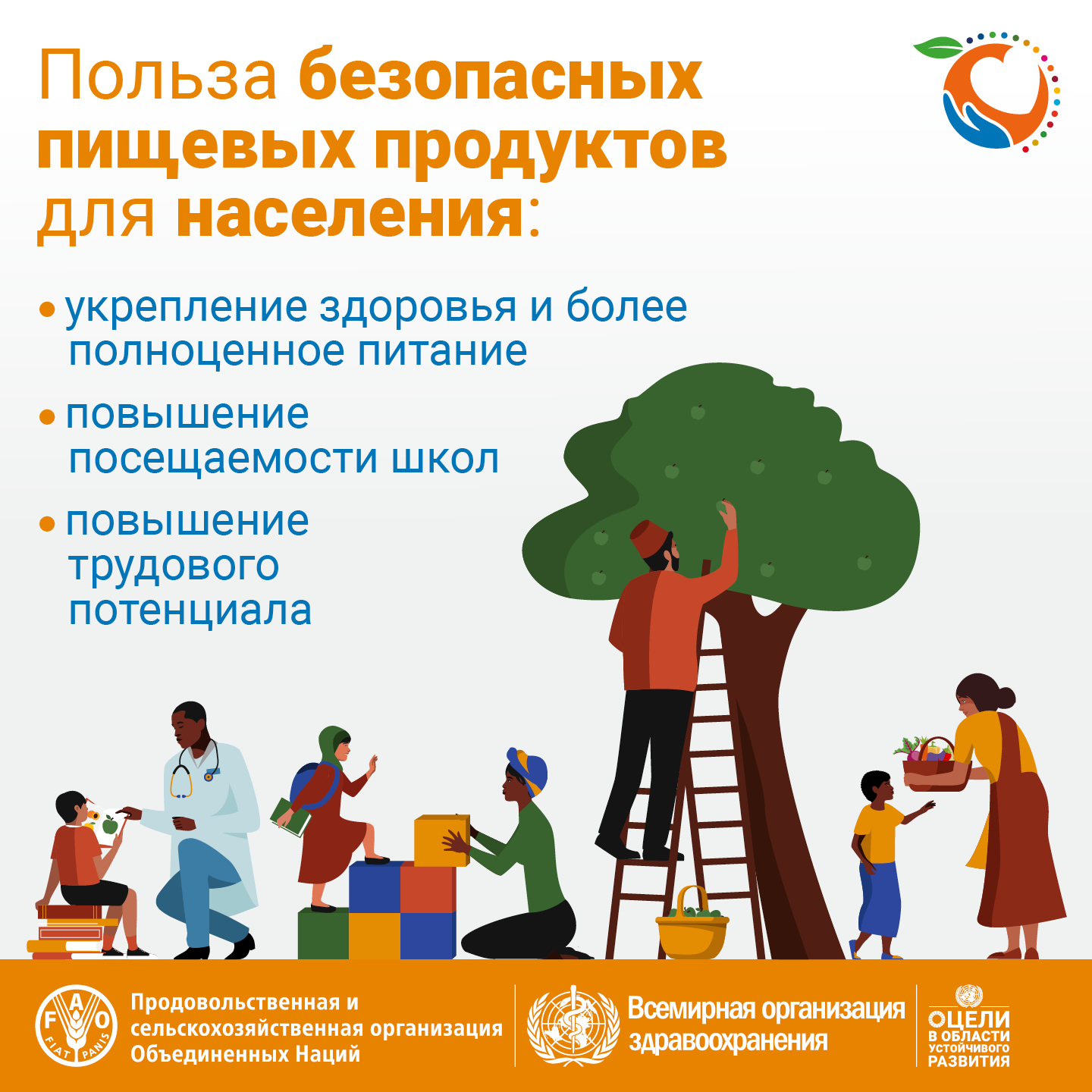 Безопасность пищевых продуктов – это общая ответственность государства, производителей и потребителей. Каждый должен вносить свой вклад на всем протяжении продовольственной цепи – от фермы до обеденного стола, — чтобы продукты питания, которые мы потребляем, были безопасными и здоровыми. В рамках Всемирного дня безопасности пищевых продуктов ВОЗ старается привлечь внимание общества к соответствующим вопросам и прилагает усилия к сокращению бремени болезней пищевого происхождения во всем мире. Обеспечение безопасности пищевых продуктов – дело каждого.