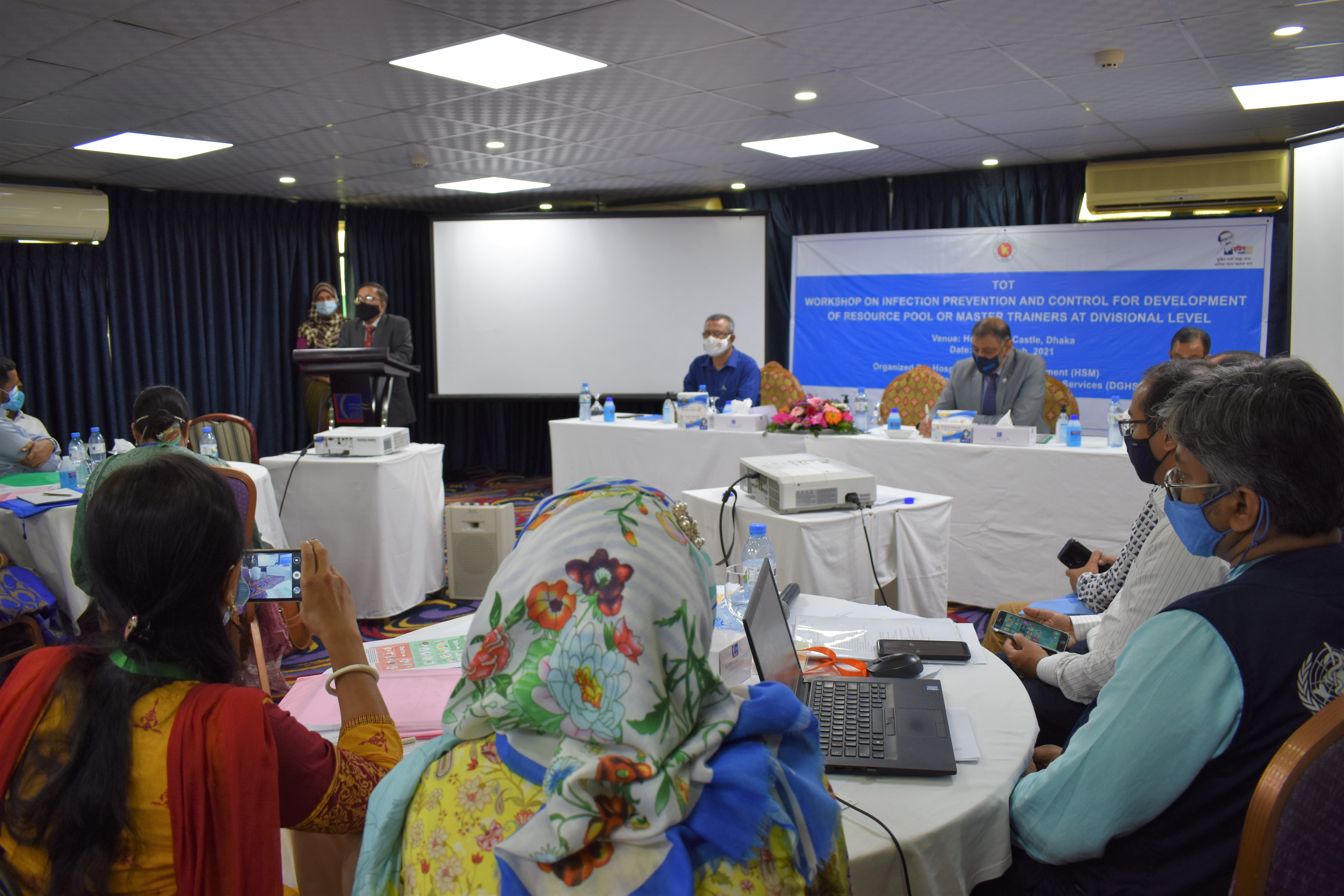 At the divisional level, the WHO Country Office supported the Directorate-General of Health Services (DGHS) in training 65 physicians and nurses from medical colleges and district hospitals in eight divisions on infection prevention and control in March 2021.