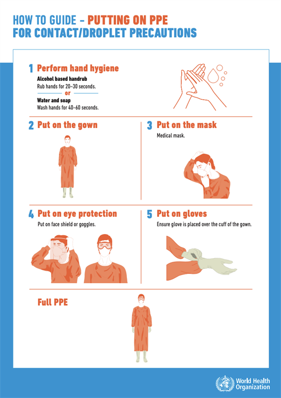 - Follow the correct steps for putting on and removing Personal Protective Equipment
