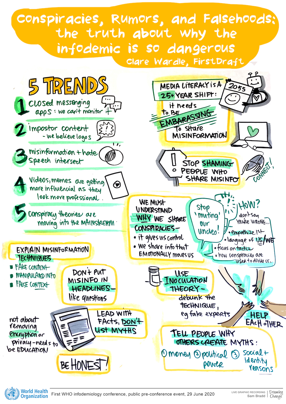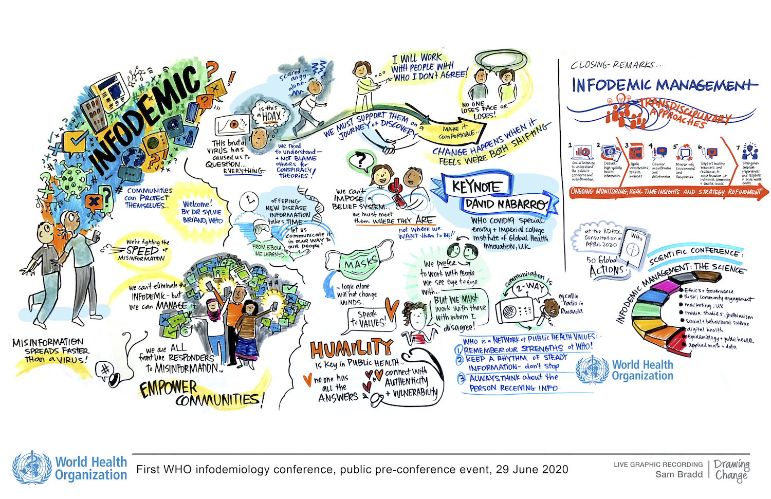 On 29 June 2020 EPI-WIN, WHO Information Network for Epidemics kicks off the 1st WHO Infodemiology Conference to discuss formation of a trans-disciplinary science that will underpin infodemic management and inform evidence-based infodemic management interventions. In the pre-conference experts engaged with the public with 7 inspiring talks how the infodemic affects the world currently and reflections how it can be managed.