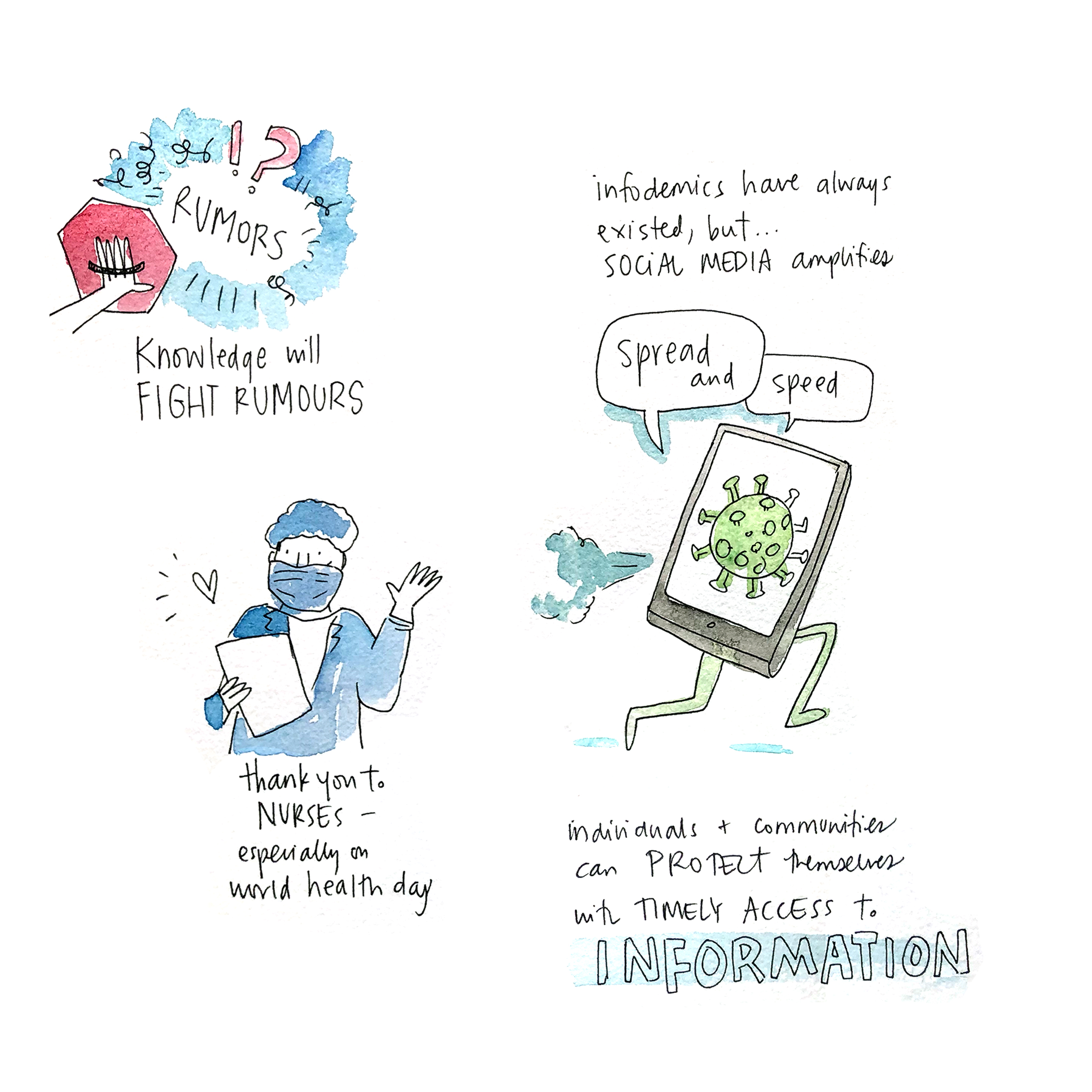 On 7 and 8 April, the WHO Information Network for Epidemics (EPI-WIN) held a two-day global online consultation on managing the COVID-19 infodemic. The aim of this consultation was to crowdsource ideas for fighting the infodemic from an interdisciplinary group of experts and the 1,300 participants joining the webinar. Alongside the inputs of the speakers, over 350 ideas were submitted through an online interactive forum while the consultation was going on. Together, all these will form the basis for a COVID-19 infodemic framework to guide the actions governments and public health institutions can take.