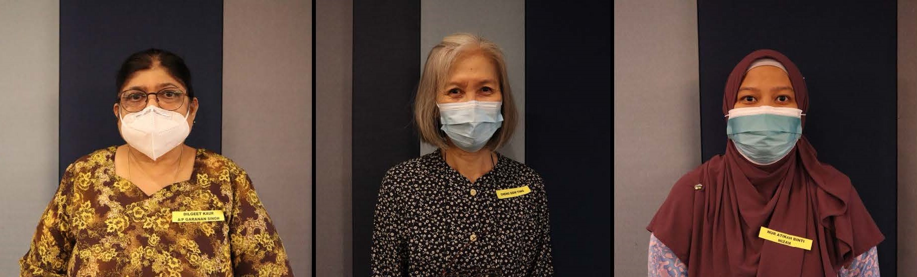 From the left: Dilgeet Kaur A/P Garanan Singh, The Golden Age Welfare Association Malaysia; Cheng Siew Ting, Alzheimer’s Disease Foundation Malaysia; Nur Atikah binti Nizam, Rumah Seri Kenangan Cheras, Jabatan Kebajikan Masyarakat. WHO/Izarra Azuddin