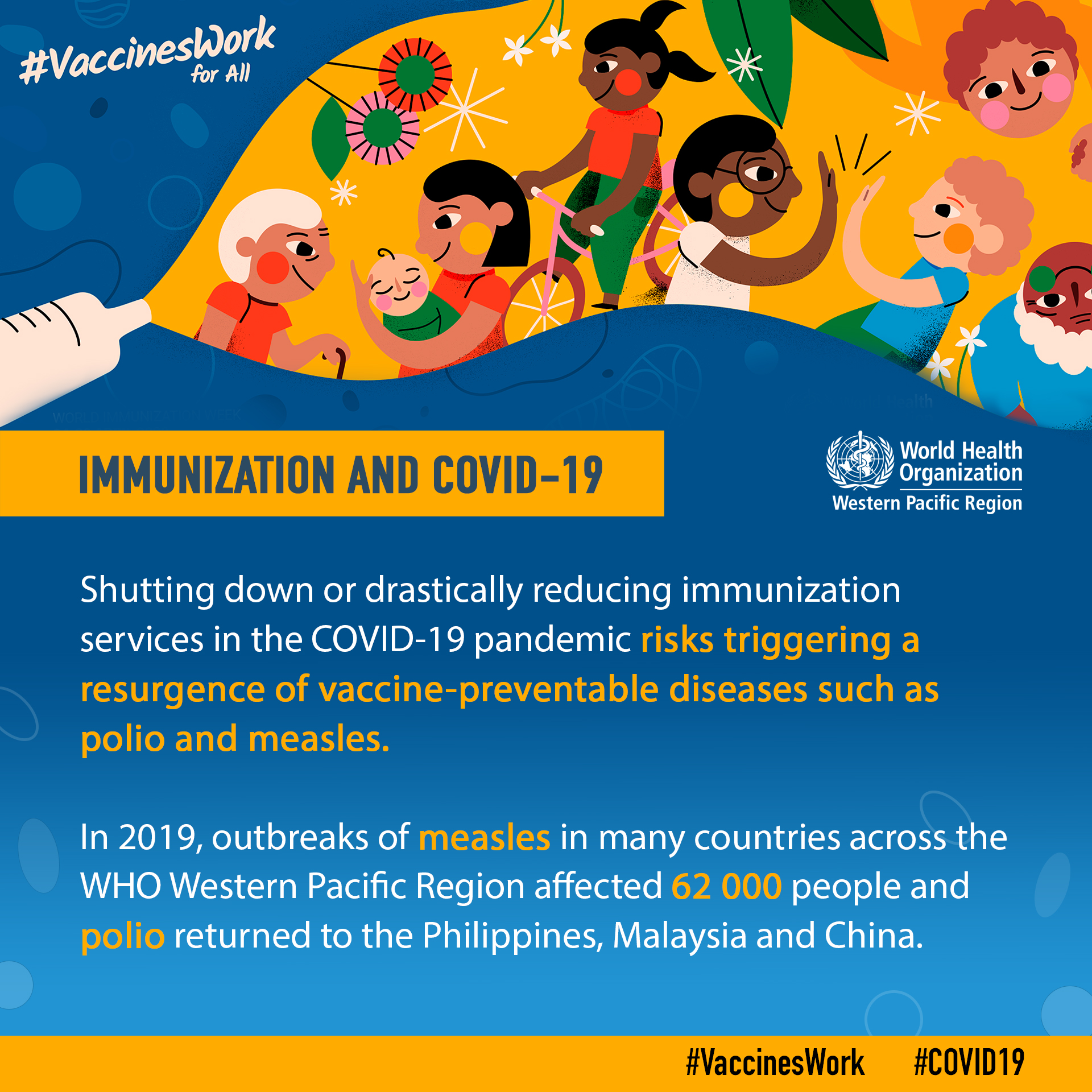 Thanks to the immunization programme, 21 countries and areas in the Western Pacific Region eliminated hepatitis B in young children, nine eliminated measles, five eliminated rubella, and the whole region has sustained elimination of wild polio virus. However, immunity gaps still remain, and vaccine-preventable disease are coming back. For example, in 2019, measles resurged in the region, with outbreaks in multiple countries and devastating impact in some of them.