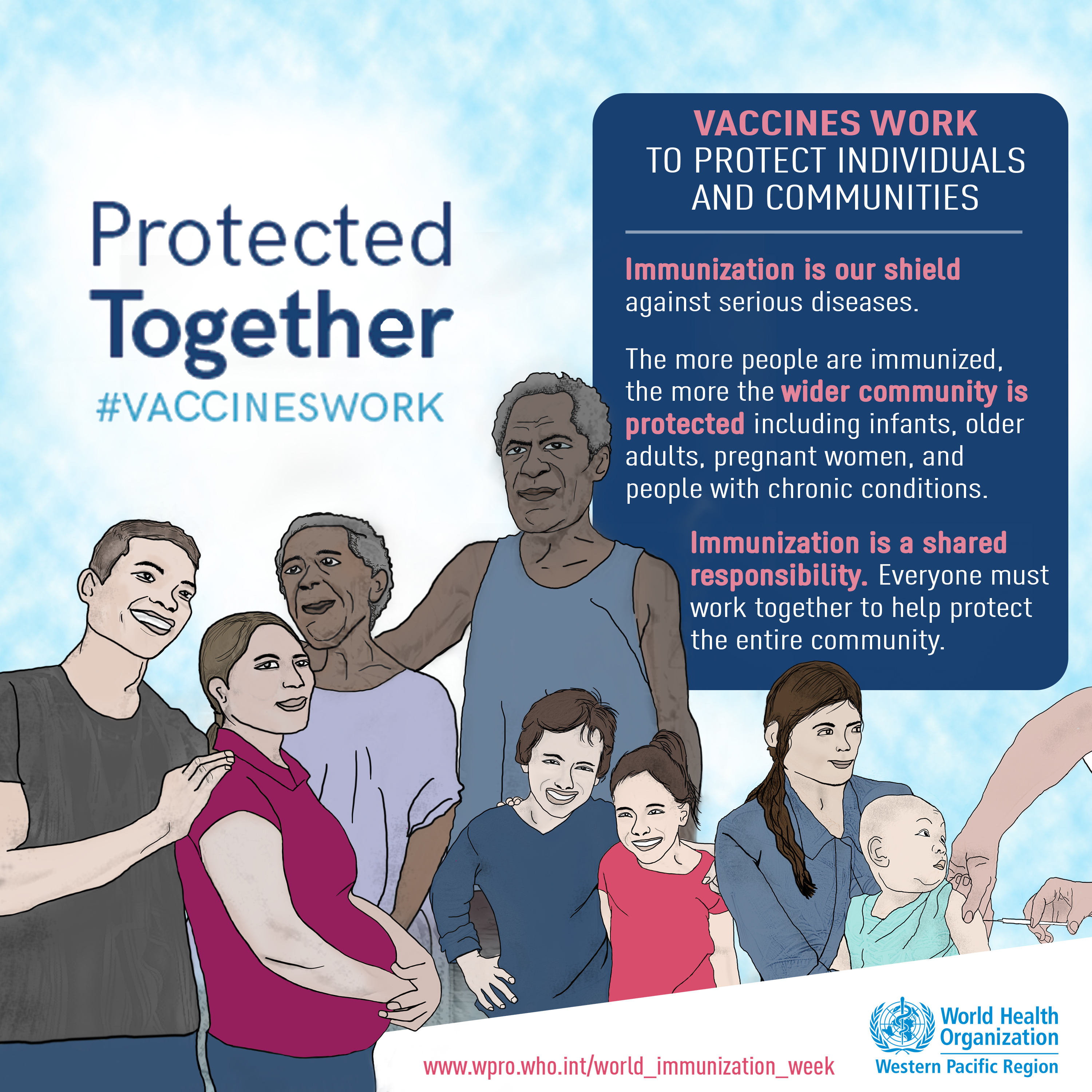 World Immunization Week, celebrated also in Western Pacific Region from 24–30 April 2018, aims to highlight that immunization is a powerful tool to protect us against vaccine-preventable diseases. Great progress has been already made in the Western Pacific Region (WPR): together, through immunization, we eliminated poliomyelitis from all WPR countries, we eliminated measles in eight countries, and we eliminated hepatitis B among children in 19 countries. However collective action is needed to ensure that achievements are sustained, further progress is made and every person in the Region is protected from vaccine-preventable diseases.