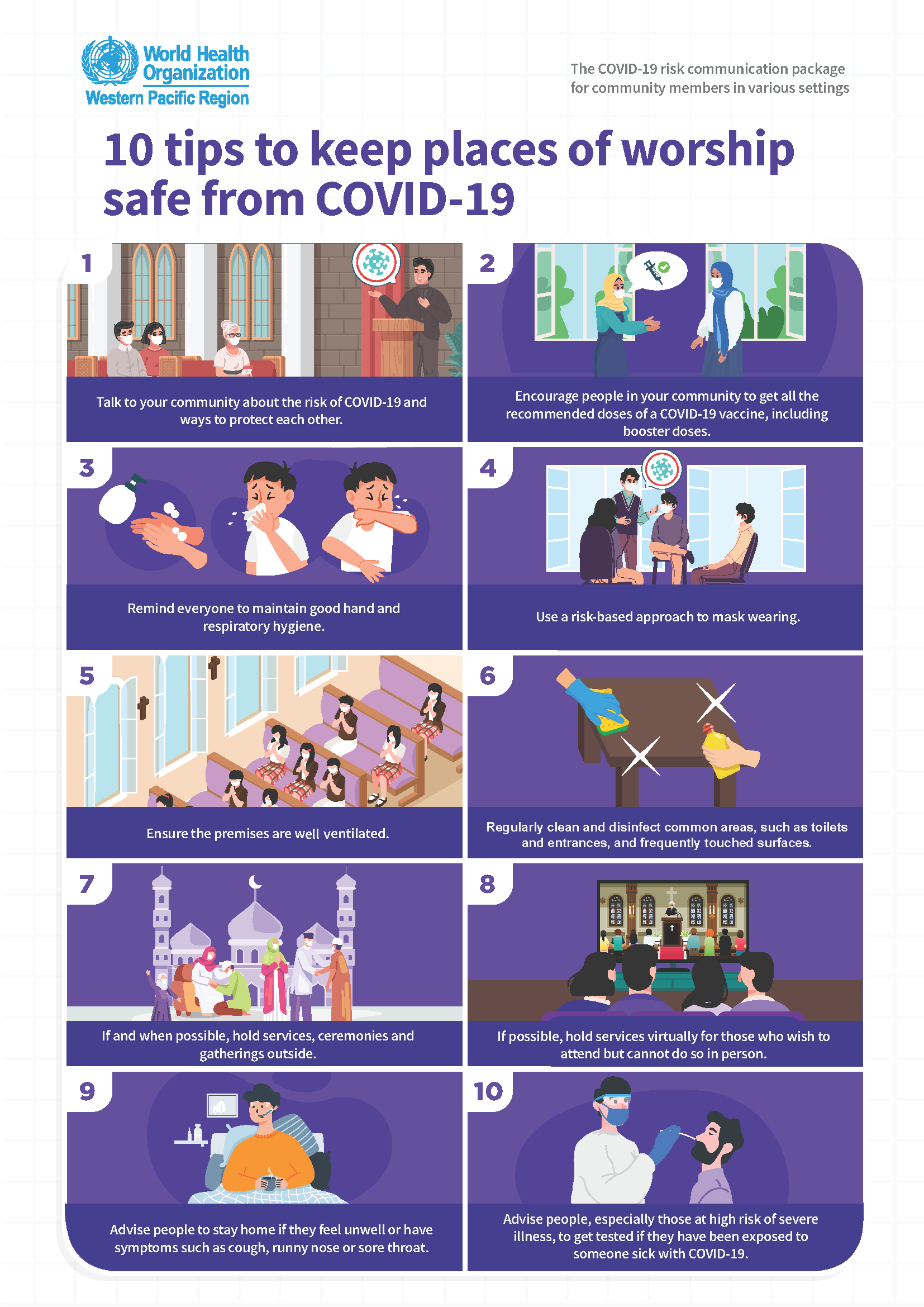 10 tips to keep places of worship safe from COVID-19 20 December 2022 | graphics (poster) WHO Team WHO Western Pacific