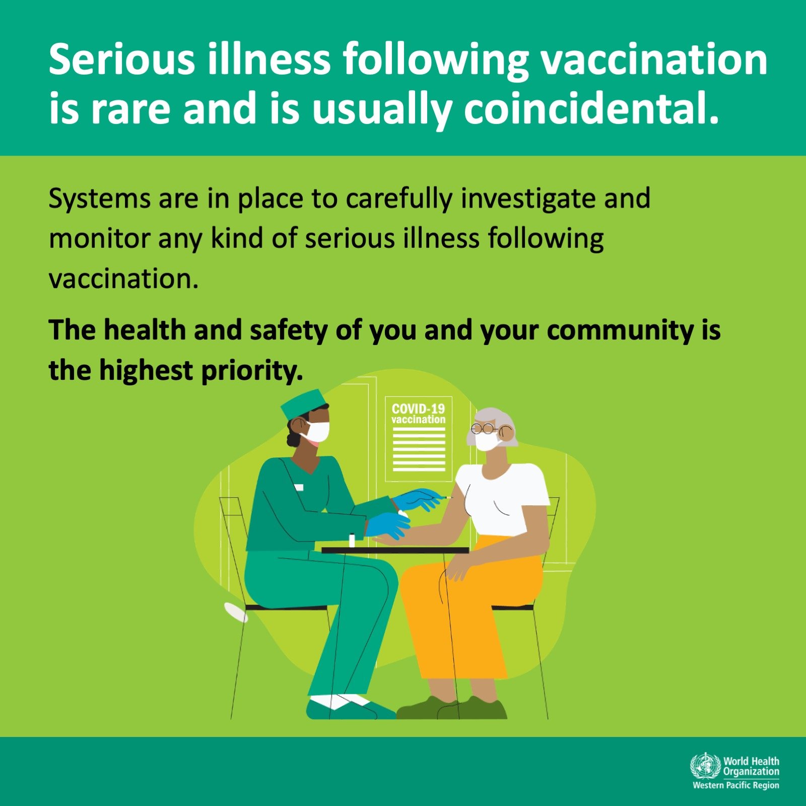 COVID-19 vaccine AEFIs side effects and safety 30 April 2021 | graphics (social media tile) WHO Team WHO Western Pacific